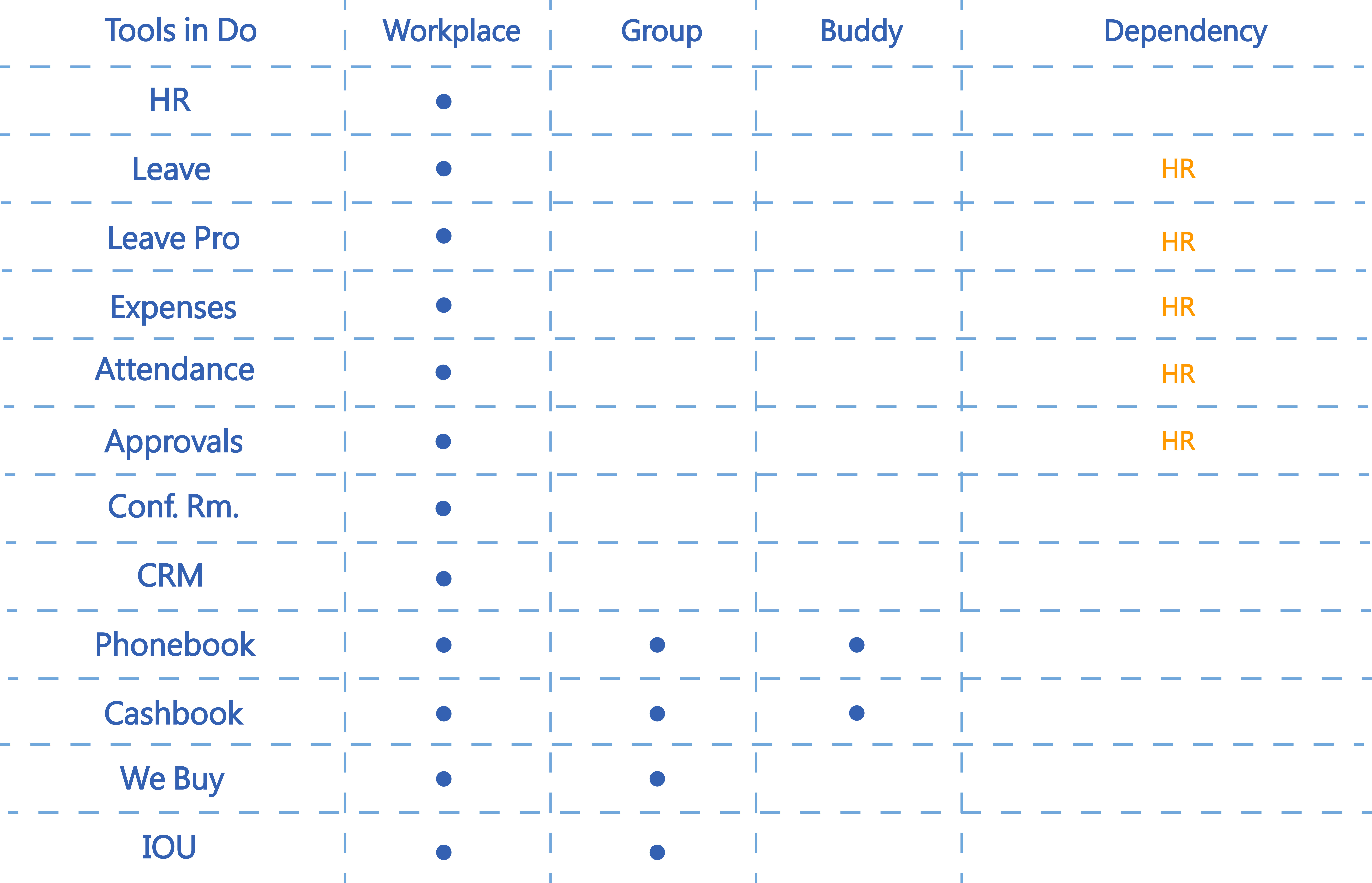 Workplace, groups and buddies all have specific advanced tools to use for further cooperation.